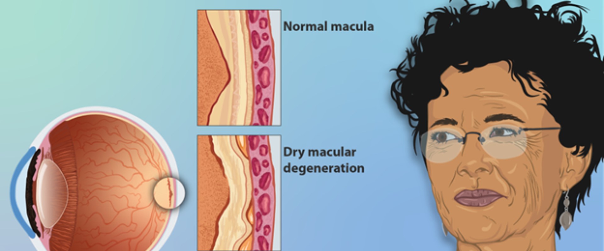 Dry AMD is more common and progresses more slowly. It occurs when the macula thins with age and drusen (tiny yellow or white deposits) accumulate under the retina. Currently, there is no cure for dry AMD, but its progression can be slowed.
