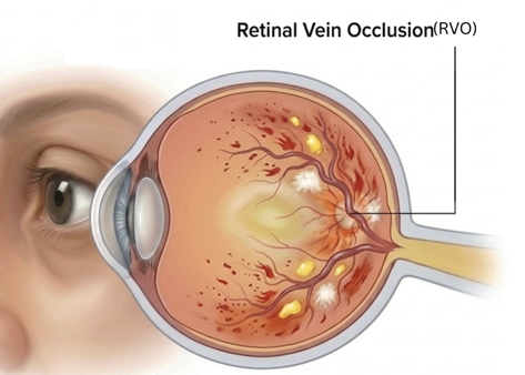 Retinal vein occlusion occurs when the veins that carry blood away from the retina become blocked, disrupting normal blood flow. This blockage can cause retinal swelling, bleeding, and vision problems. The condition is often linked to underlying health issues such as high blood pressure, diabetes, and glaucoma.
